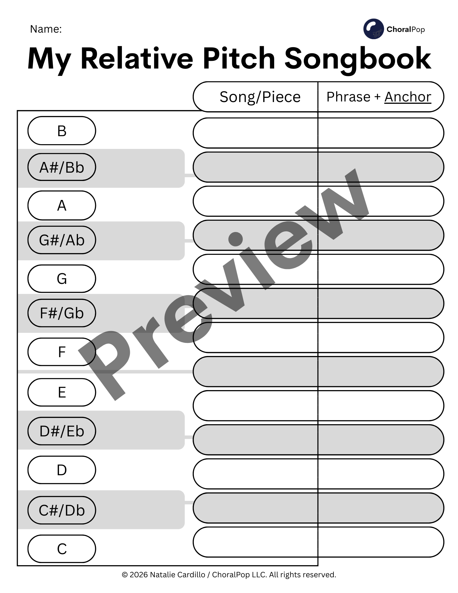 When theyโre ready, add the song and phrase to their Relative Pitch Songbook, underlining their anchor โ the word or syllable theyโll use to find the pitch theyโre are aiming for